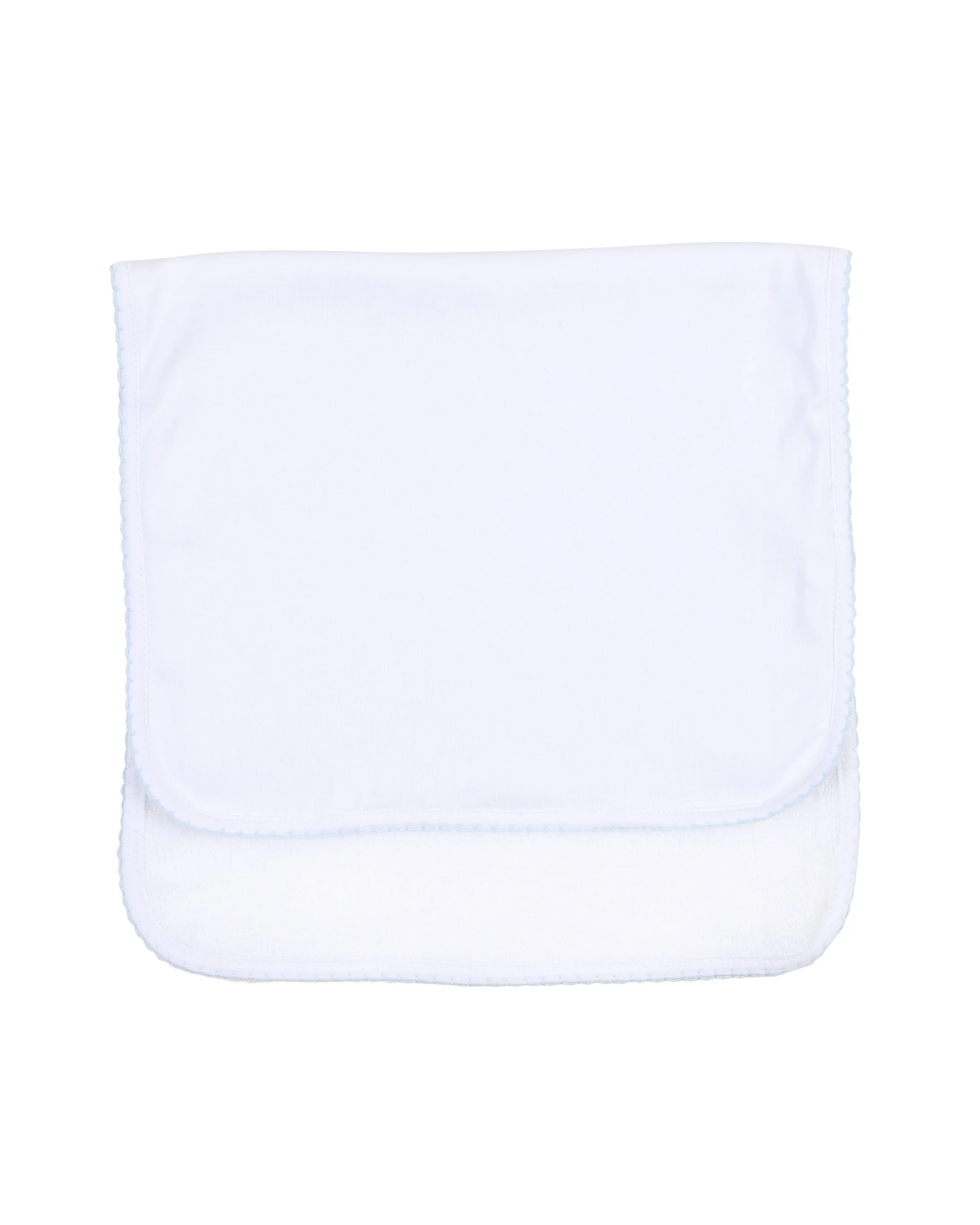Sweetest comfort for little moments. Our Magnolia Baby Essentials Picot Trim Burp Cloth offers the gentle touch of pure pima cotton, perfect for after-feeding cuddles. The soft blue trim adds a classic Magnolia Baby charm. Absorbent, soft, and beautifully simple.