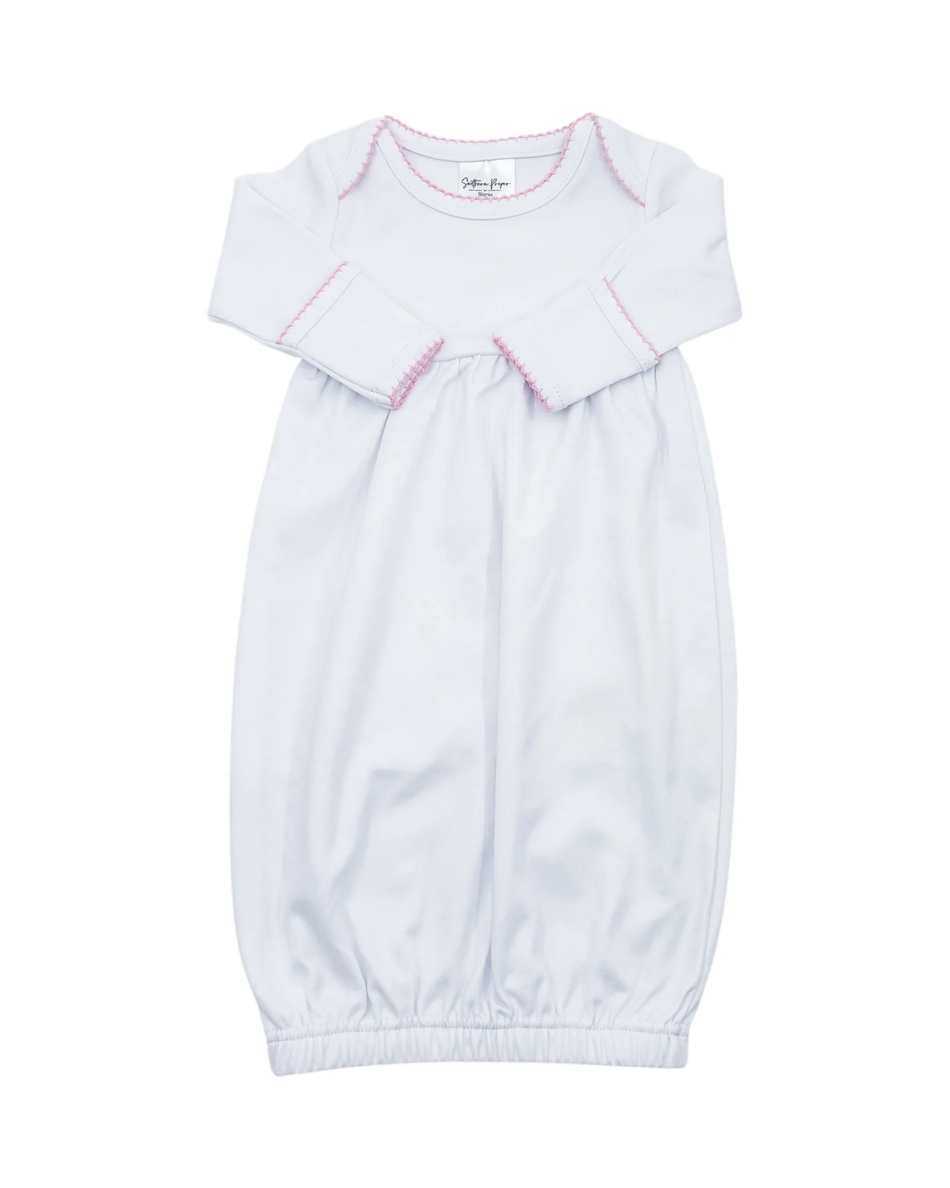 Wrap your little one in softness with our Picot Trim Baby Gown, a timeless newborn essential designed for comfort, convenience, and classic style. Made from ultra-soft cotton that is gentle on delicate skin, this gown features delicate picot trim detailing along the neckline and cuffs for a sweet heirloom-inspired finish.