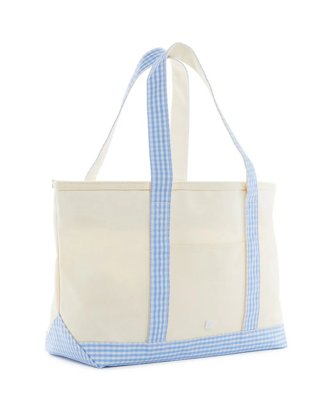 TRVL Medium Tote - Coated Canvas Natural with Gingham Sky Trim