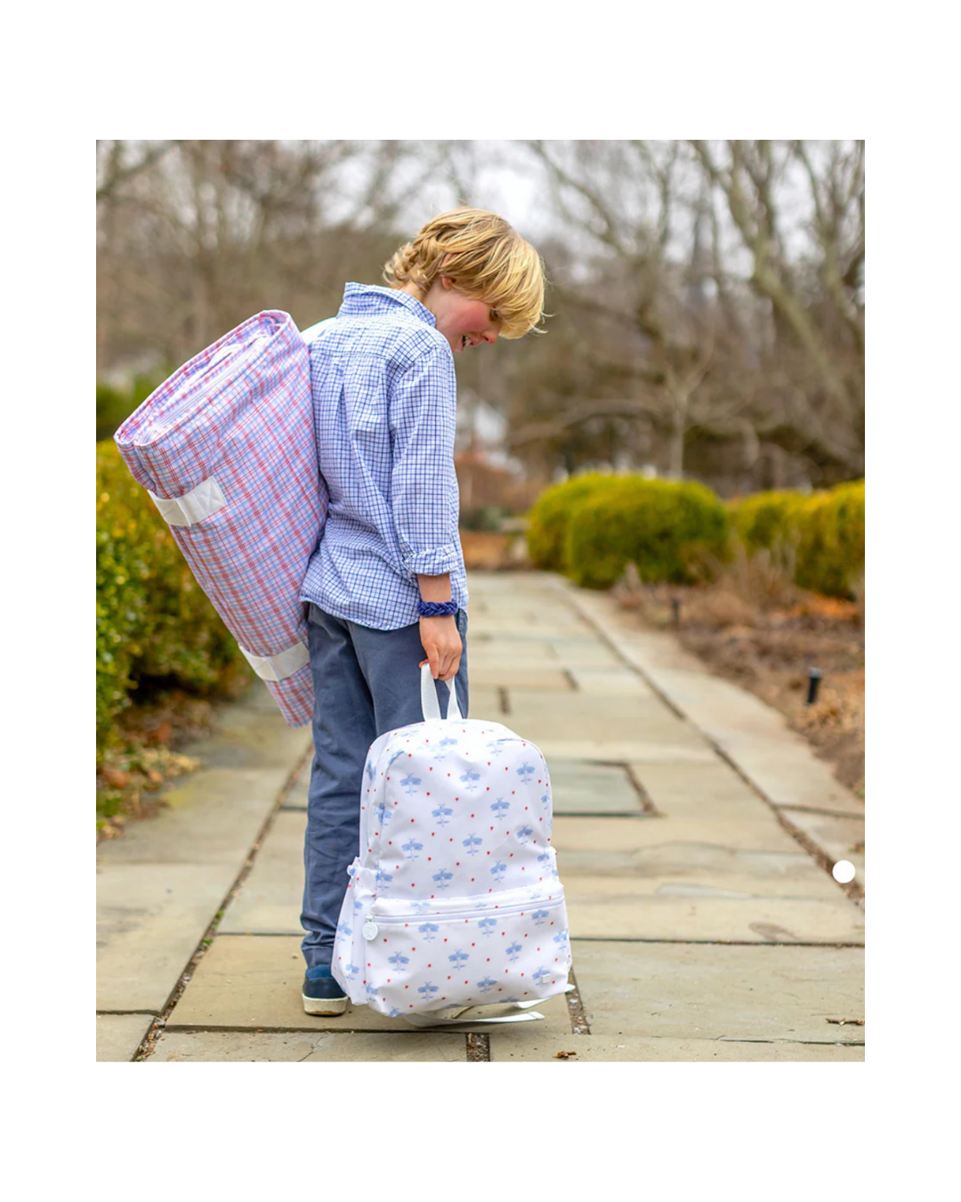 Introducing Our Rest Up! NAP MAT - GARDEN FLORAL, the perfect solution for a comfortable and clean nap time! Made with our signature coated print outer that provides a wipeable and antimicrobial exterior. Our FLIP & FOLD design is easy to open and close for all ages. The full inside zip around cover ensures dirt, germs, and little creatures to stay on the outside and not on the plush fleece inside where your little ones lay. Each mat has a comfortable wide web shoulder strap for easy transport to and from school and for travel!