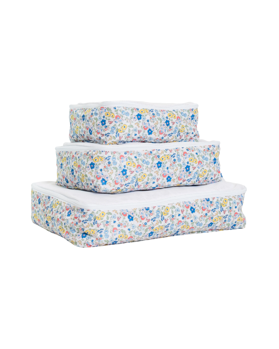 Packing Squads - are a TRVL Game changer!! Make packing organized and compact with these bags that can hold a weeks worth of clothing in a carry on! Designed in our signature prints in lightweight poly with a stretch mesh top - they fit perfectly into your luggage and drawers. TRVL made easy!