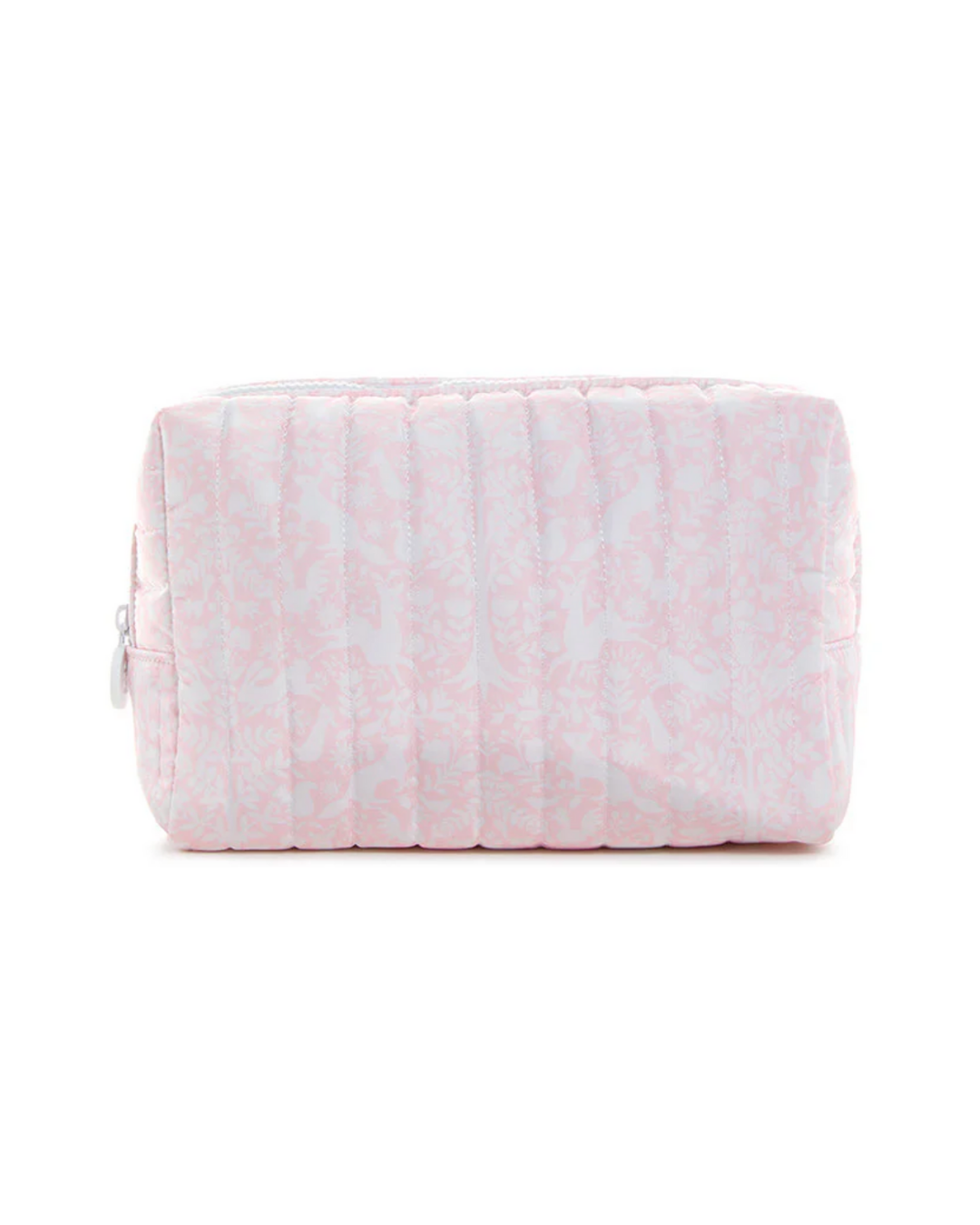 Perfect for Everyday use! This ultimate large, soft, lightweight quilted zippered pouch is ideal for diapers, wipes, toiletries, cosmetics and everything in between. This style is designed to stand on its own and has an interior pocket for smaller needs. Both functional and beautiful, this would be a great addition to any TRVL set and it is wipeable inside and out and machine washable.