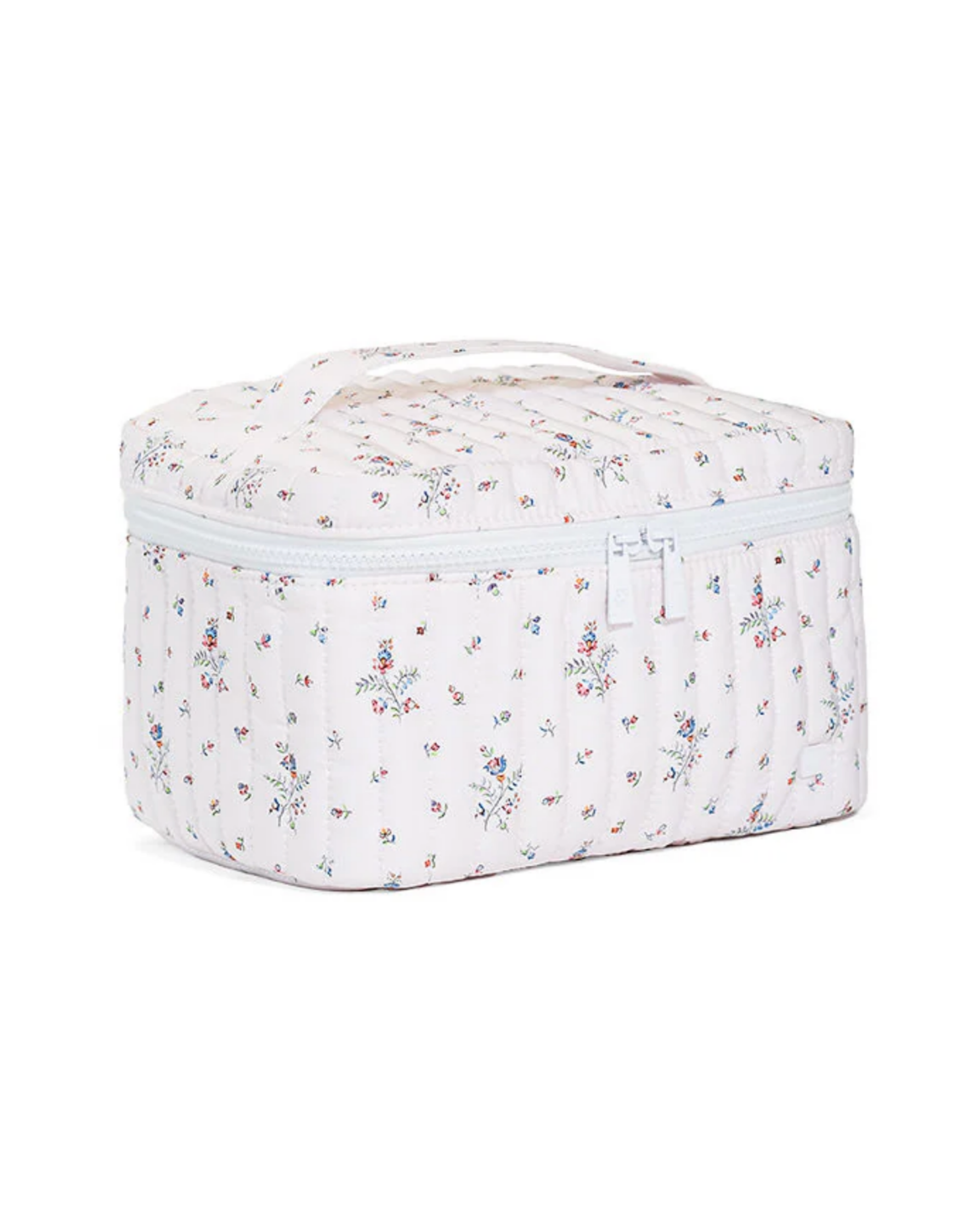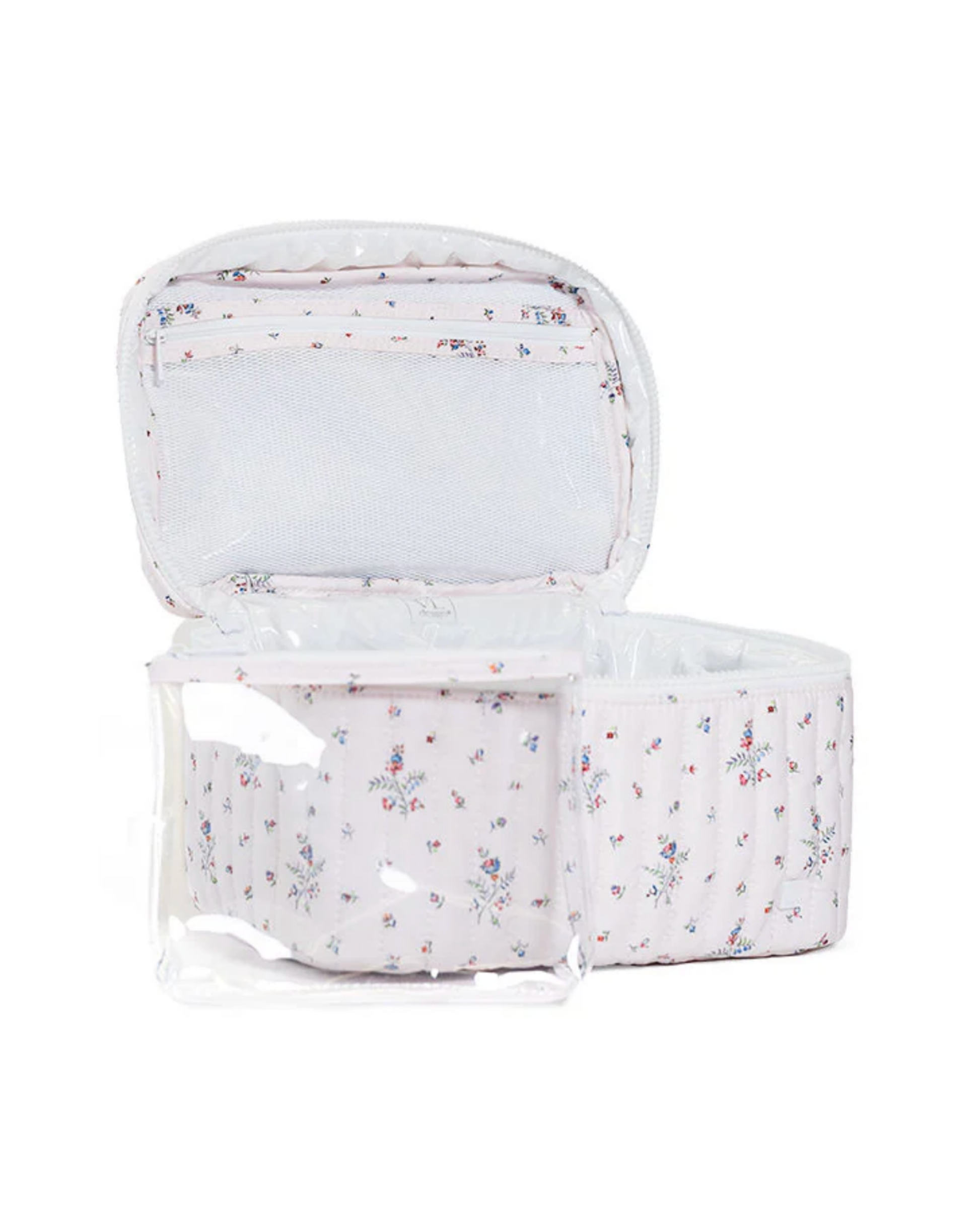 Our Quilted Train Set is super stylish and lightweight that will keep your cosmetics organized on the go. It opens up to offer ample room for makeup and beauty products, a zippered mesh pocket on the inside lid, elasticized compartments around the outer edge, and a removeable clear pouch. This set makes the perfect thoughtful gift for a lover of beauty and cosmetics or it can be an ideal treat for yourself when you're off on your travels.