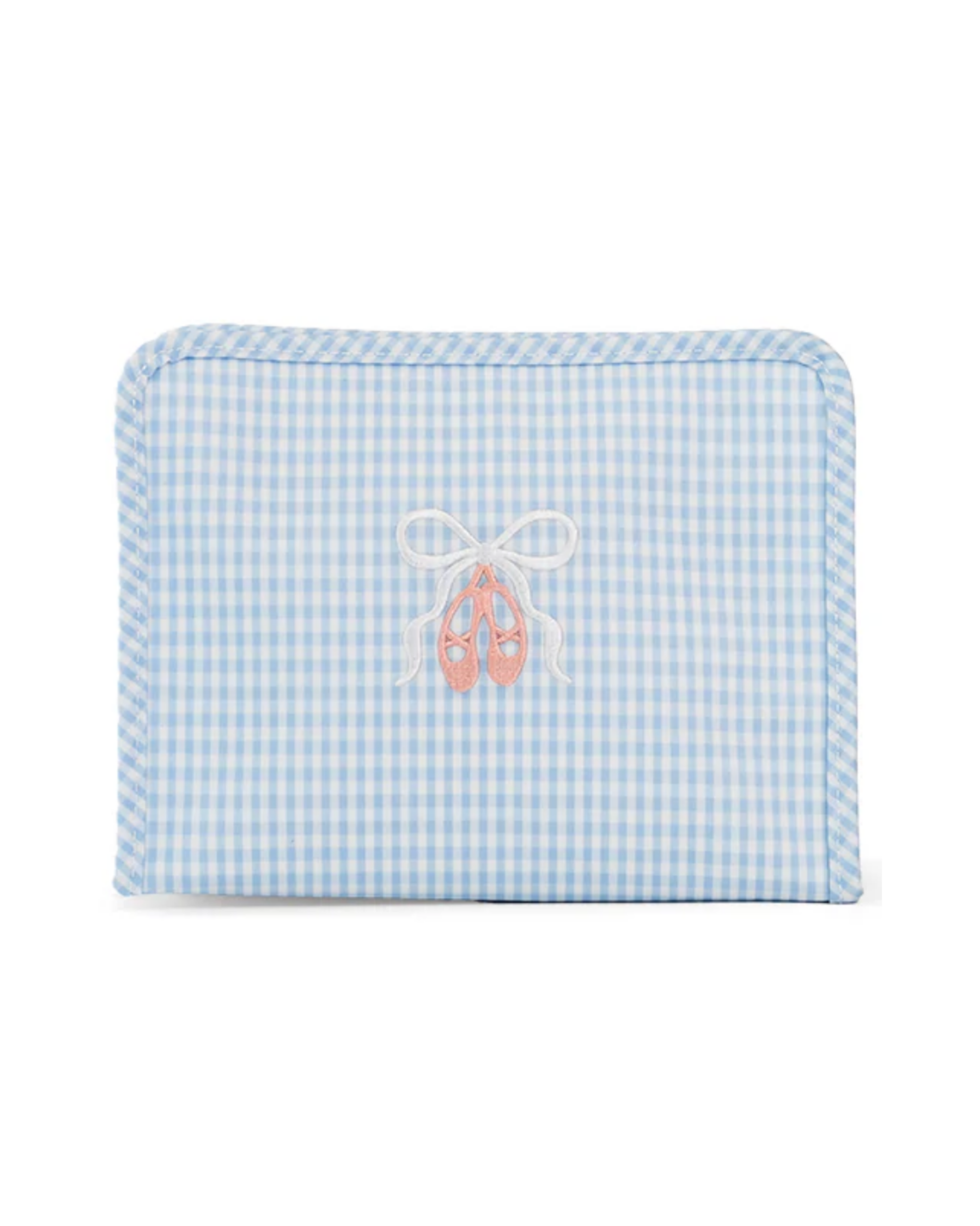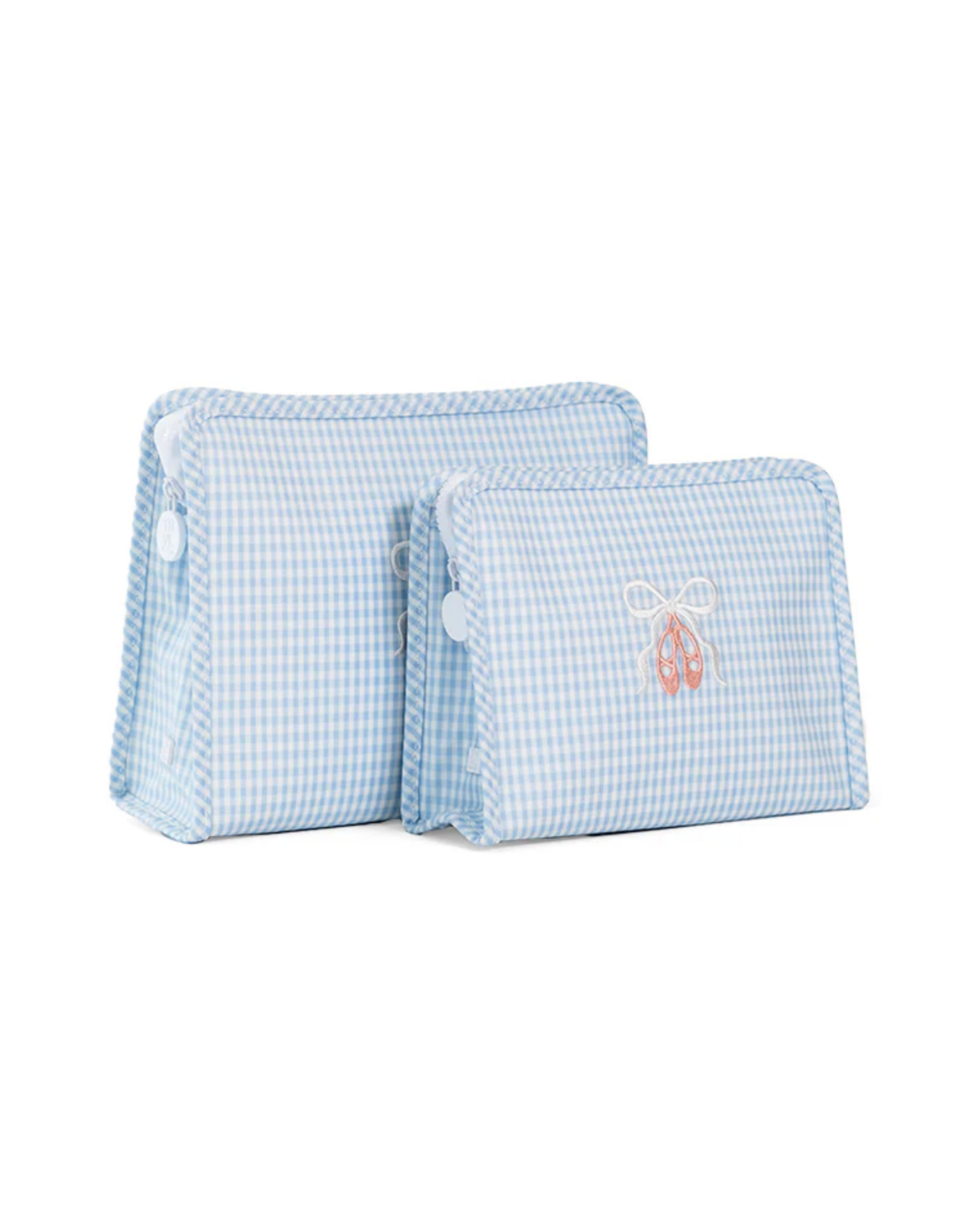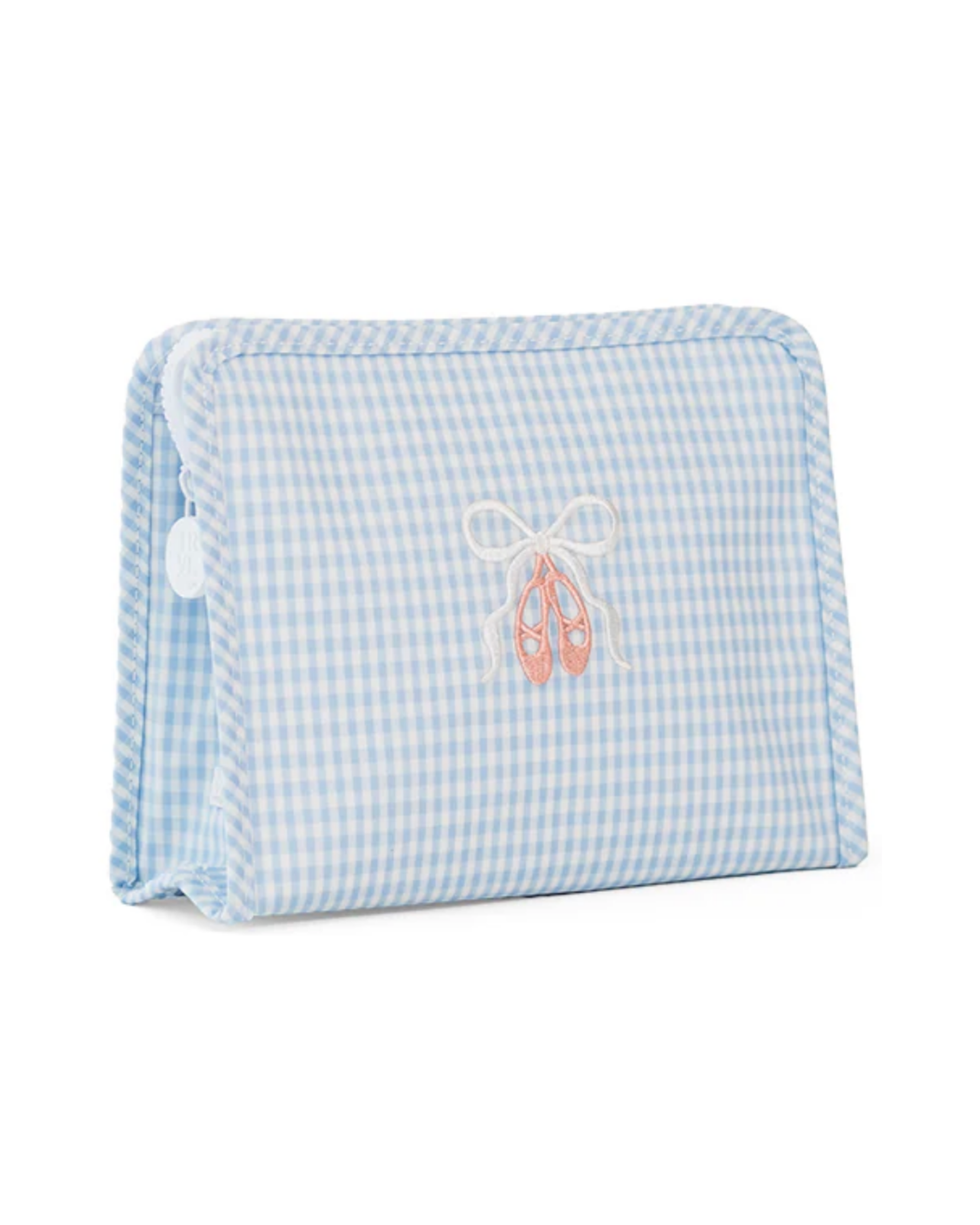 Our best-selling Roadies are our BFFs in the pouch world! Available in 2 sizes, our Medium Roadie is made in an Embroidered cotton gingham with a thin Eco-friendly matte coating, an inside slip pocket and exterior snap open zip tabs for a wider opening and an easier access.