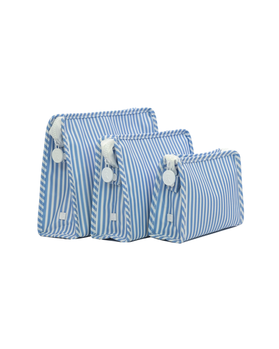 Our best-selling Roadies are made in a cotton gingham with a thin matte coating, an inside slip pocket and exterior snap open zip tabs for a wider opening and an easier access.