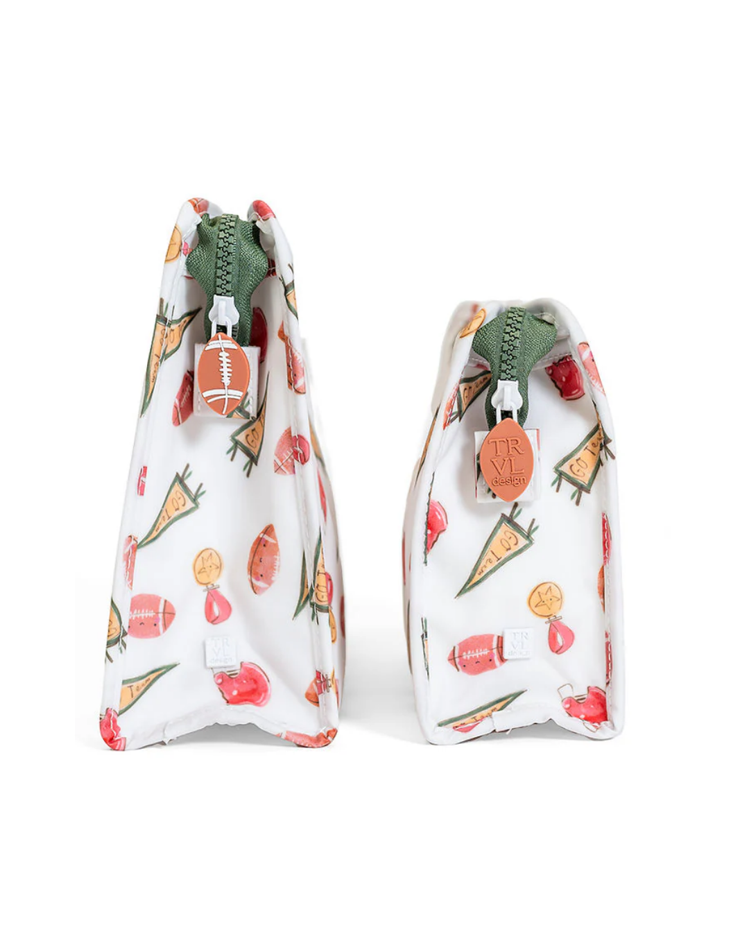 Our best-selling Roadies are made in a cotton gingham with a thin matte coating, an inside slip pocket and exterior snap open zip tabs for a wider opening and an easier access.